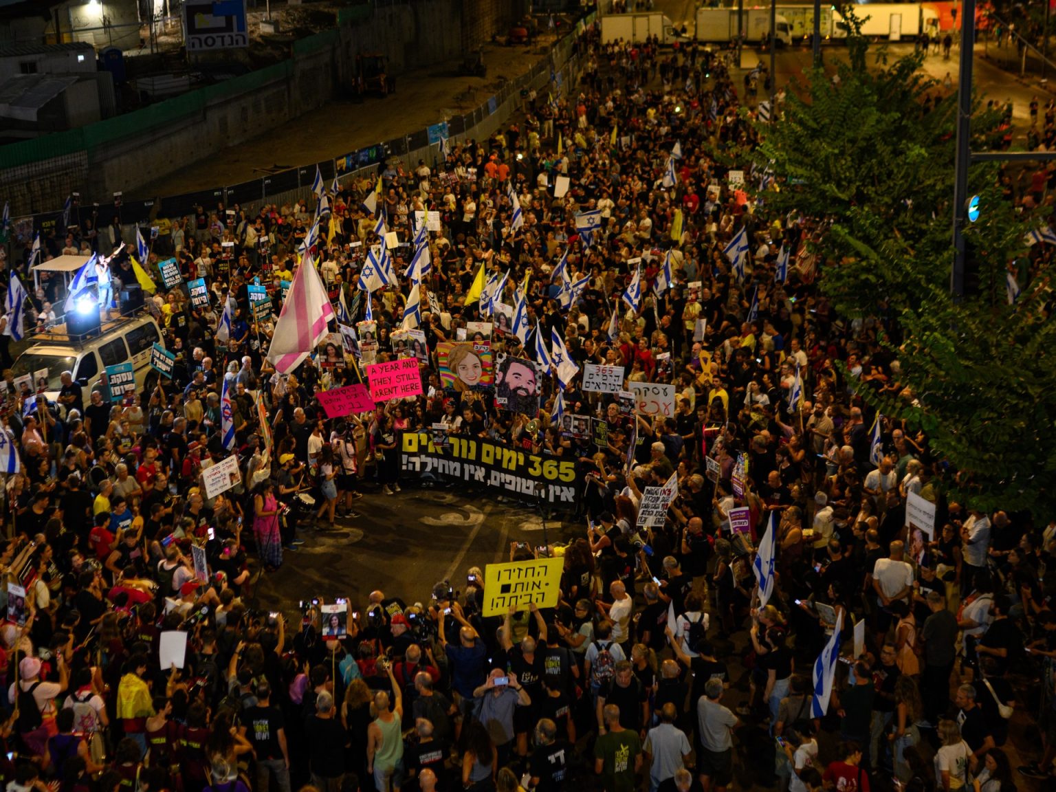 خرج آلاف الإسرائيليين مرة أخرى إلى الشوارع للمطالبة بإطلاق سراح المحتجزين في قطاع غزة والتوصل لاتفاق لوقف إطلاق النار ينهي الحرب الممتدة منذ عام.