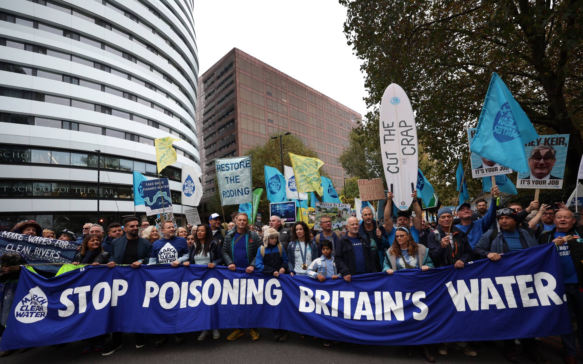 ونُظمت مظاهرة المياه النظيفة بدعم من منظمات بيئية من بينها «غرينبيس» و«وايلد لايف تراستس» و«بريتيش روونغ».