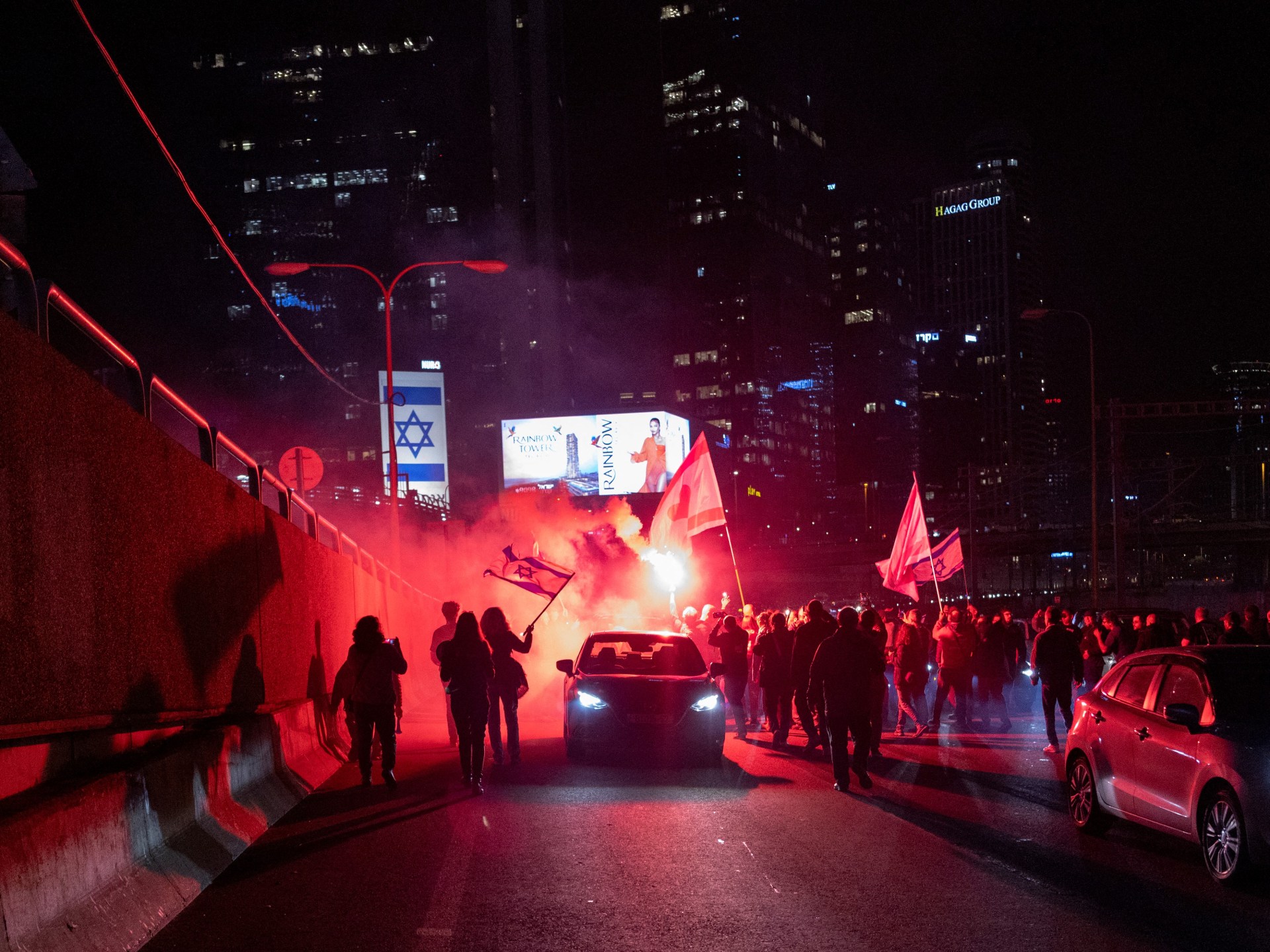 وقال مراسل الجزيرة إن المتظاهرين أغلقوا طريقا رئيسيا في تل أبيب لأول مرة منذ بدء الاحتجاجات.