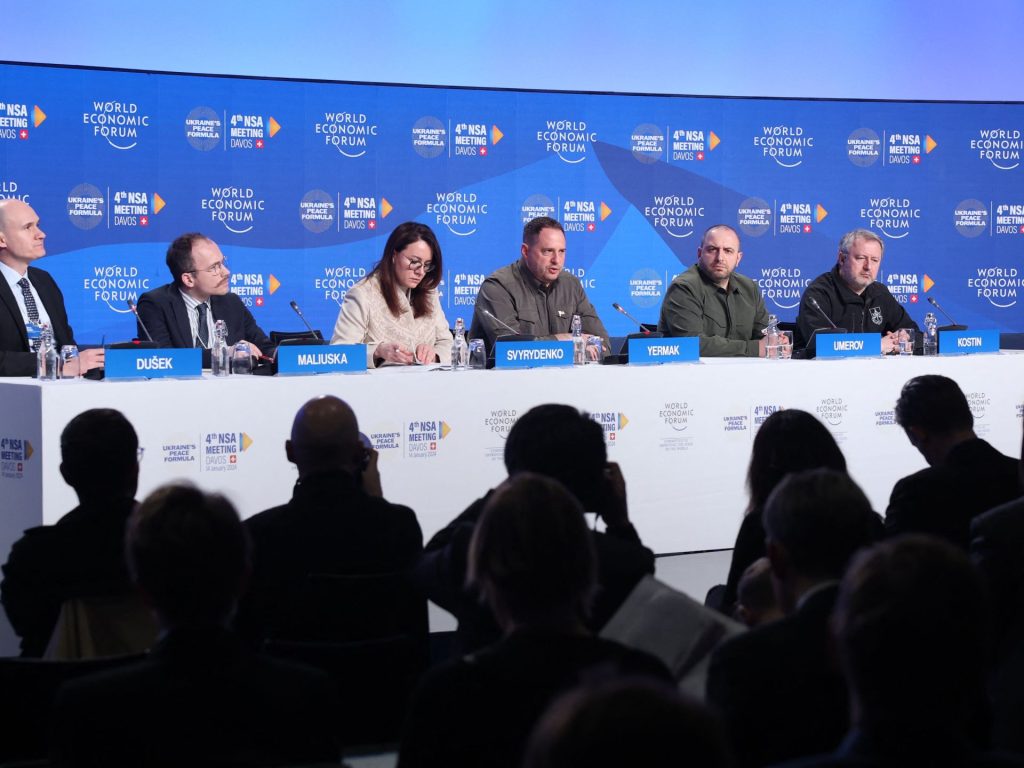 وركزت محادثات دافوس بشكل خاص على اعتماد معايير لوضع حد للأعمال العدائية، وانسحاب القوات الروسية، وتحقيق العدالة إثر الجرائم المرتكبة، ومنع أي تصعيد جديد.