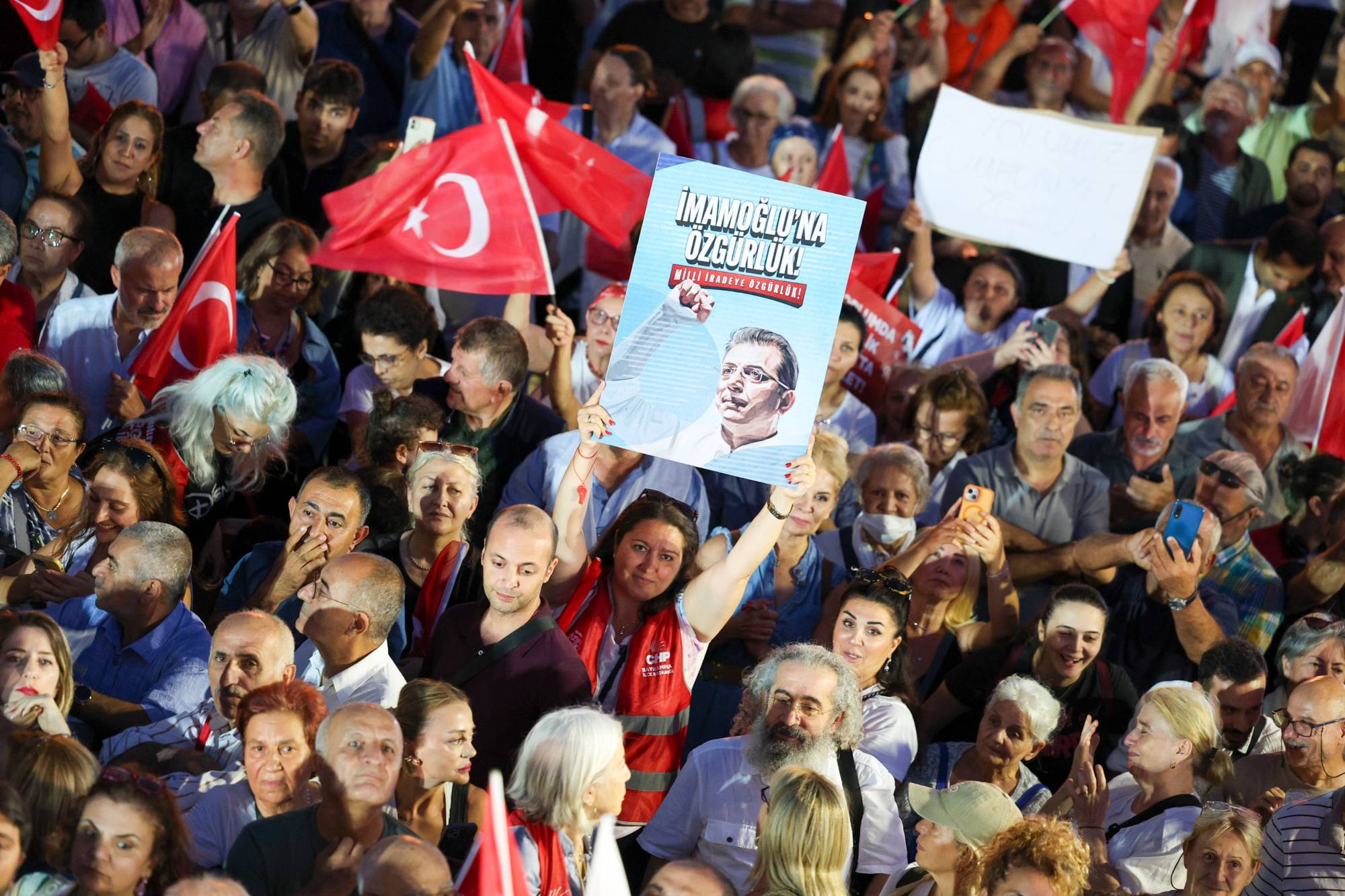 إحدى المظاهرات في تركيا للمطالبة بإطلاق سراح أكرم إمام أوغلو (حزب الشعب الجمهوري – إكس)