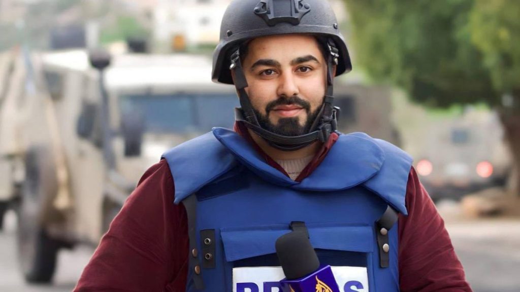 ووقع ذلك أثناء وجود الصحفي ليث جعار مع المصور في محيط مستشفى ثابت ثابت الحكومي لتغطية المجزرة التي نفذتها قوات الاحتلال بمخيم طولكرم في الضفة الغربية بقصف جوي غير مسبوق أوقع 18 شهيدا.