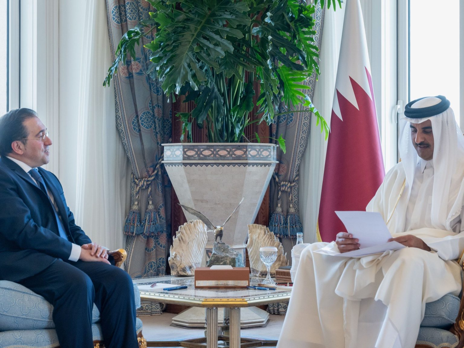 وكتب ألباريس على منصة إكس “نقلت لأمير قطر التزام إسبانيا الراسخ بالسلام والاستقرار في المنطقة، ودعمها إطلاق سراح الرهائن، ووقف إطلاق النار، وحل الدولتين، وتعايش إسرائيل وفلسطين في سلام”.