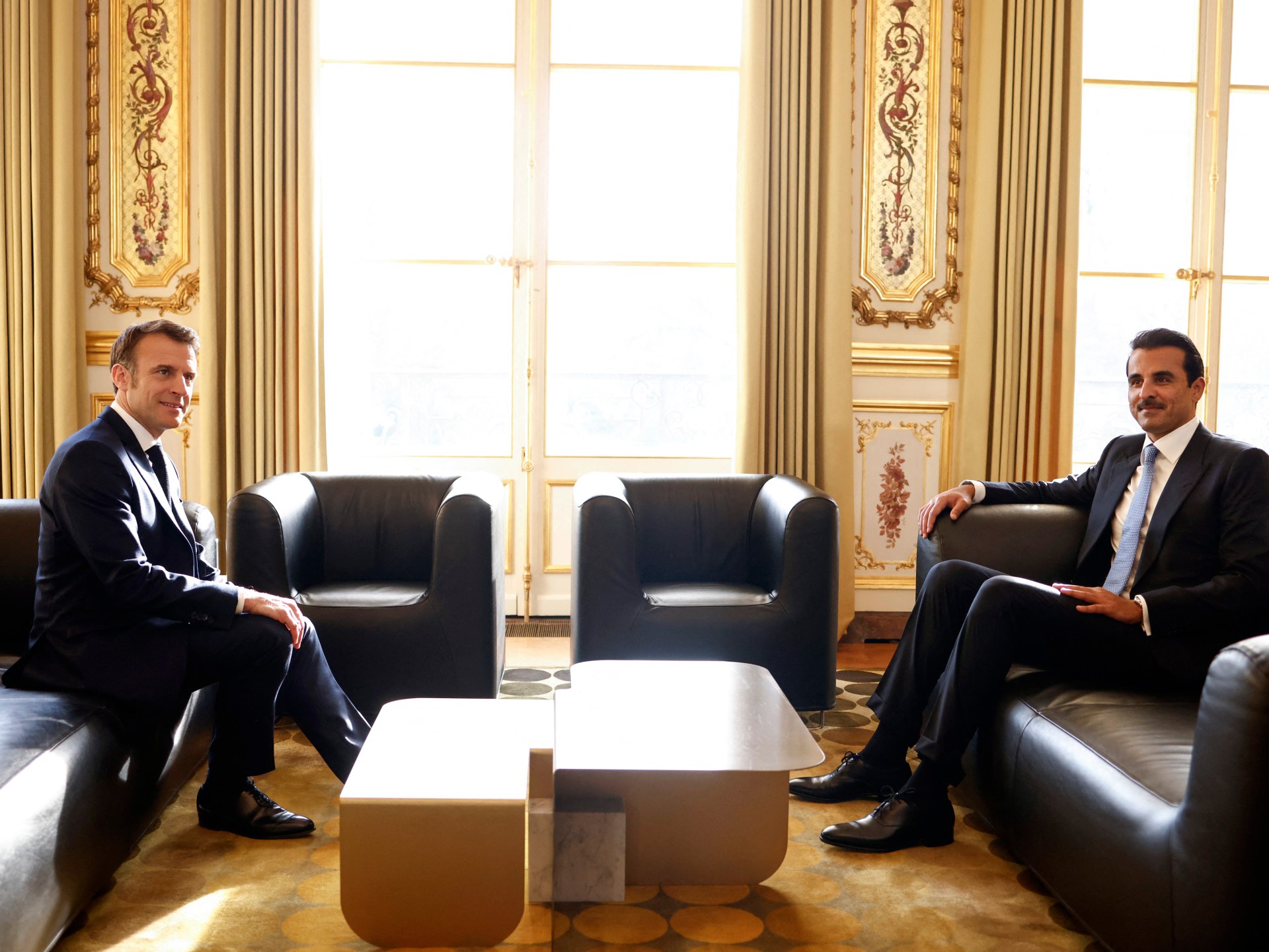 ونقلت وكالة الأنباء القطرية أن أمير قطر الشيخ تميم بن حمد آل ثاني عقد جلسة مباحثات الثلاثاء مع الرئيس الفرنسي إيمانويل ماكرون في باريس بشأن تطورات الأوضاع في غزة.