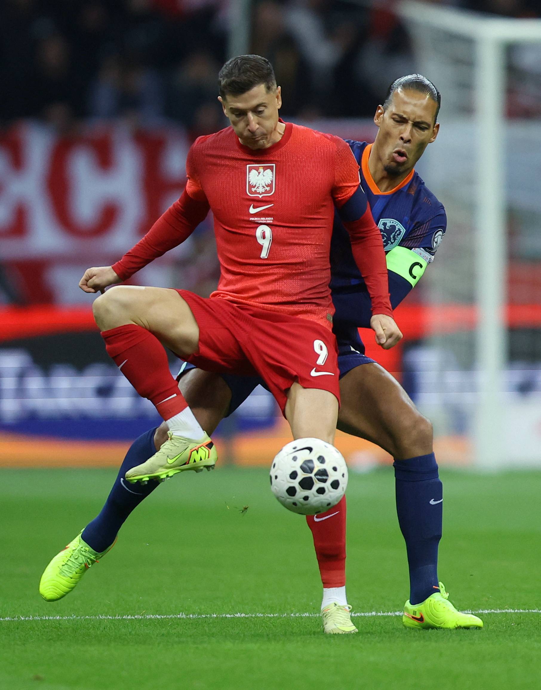 ليفاندوفسكي نجم بولندا يحذر من الملحق (رويترز)cut out