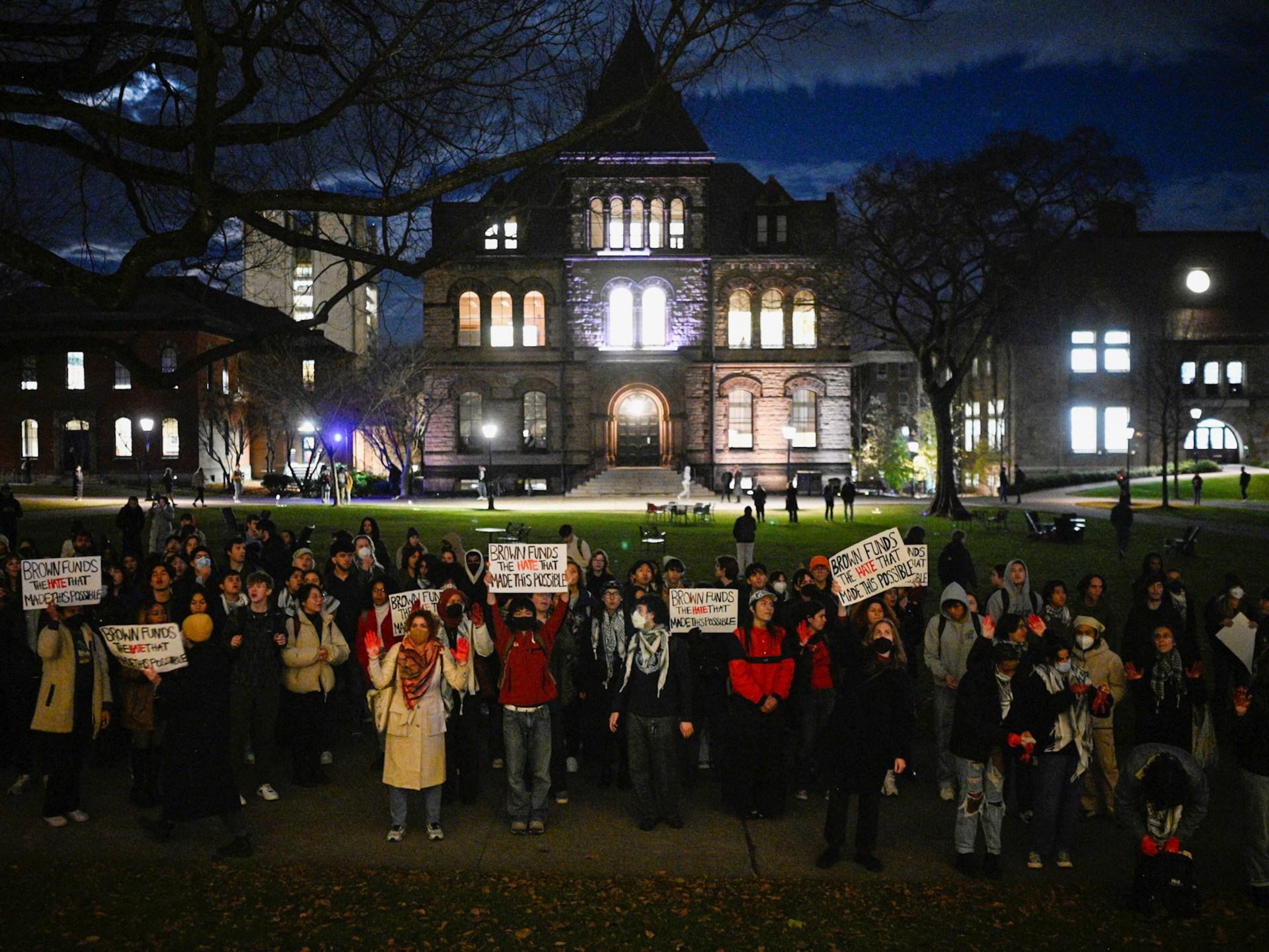 وقالت إدارة جامعة براون أمس الأربعاء إنه رغم أن الاحتجاج وسيلة تعبير ضرورية ومقبولة في الحرم الجامعي، فإنه لا يجوز للطلاب “التدخل في وظائف الجامعة”، وحذرت من عواقب أكثر خطورة إذا فشل الطلاب في مراعاة القيود المفروضة على وقت الاحتجاجات ومكانها وطريقة تنفيذها.