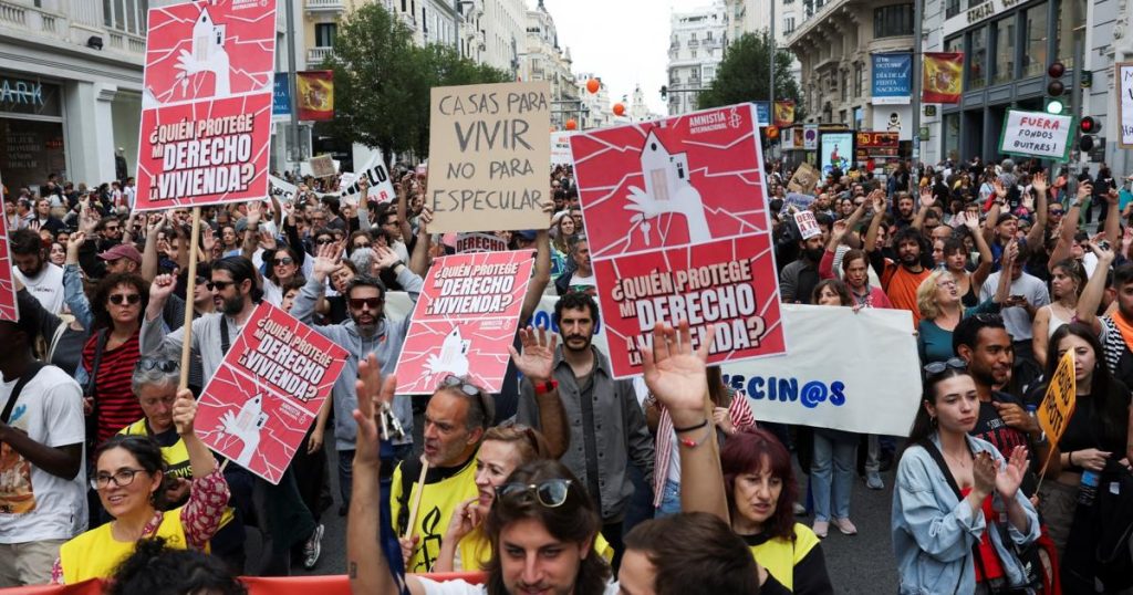 تظاهر الآلاف في العاصمة الإسبانية مدريد اليوم الأحد للمطالبة بتوفير المزيد من المساكن بأسعار معقولة، وسط غضب متزايد بين السكان من ارتفاع أسعار المنازل.