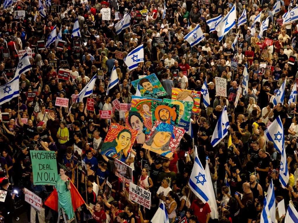 في غضون ذلك، خرجت مظاهرة أمام وزارة الدفاع الإسرائيلية في تل أبيب للمطالبة بإبرام صفقة فورية لتبادل الأسرى، حيث طالب المتظاهرون الحكومة الإسرائيلية باستغلال ما وصفوه بالفرصة الحالية لإعادة جميع المحتجزين في غزة.
