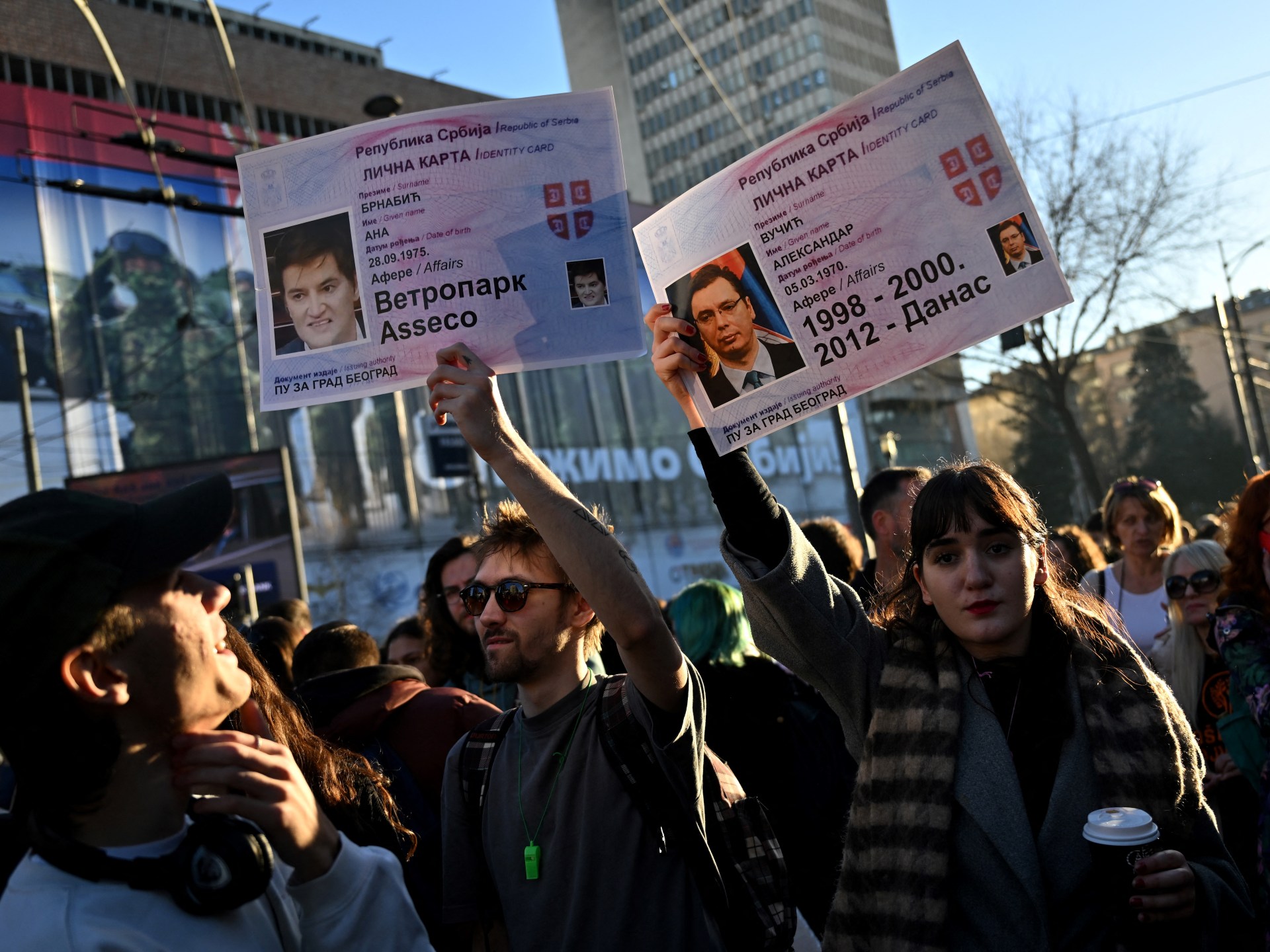 تجمع آلاف الأشخاص أمام مبنى مفوضية الانتخابات المركزية في بلغراد الاثنين للاحتجاج على نتائج الانتخابات التي أجريت في وقت سابق من هذا الشهر، والتي قال مراقبون دوليون إنها غير نزيهة.