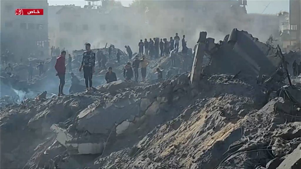 وتواصل طواقم الدفاع المدني محاولات إنقاذ الجرحى وانتشال جثث الشهداء من تحت ركام المبنى المحطم بالفالوجا. وفي مخيم جباليا، أظهرت صور للجزيرة استهداف قوات الاحتلال لمخيم جباليا، وسقوط عشرات القذائف على النازحين في المخيم.