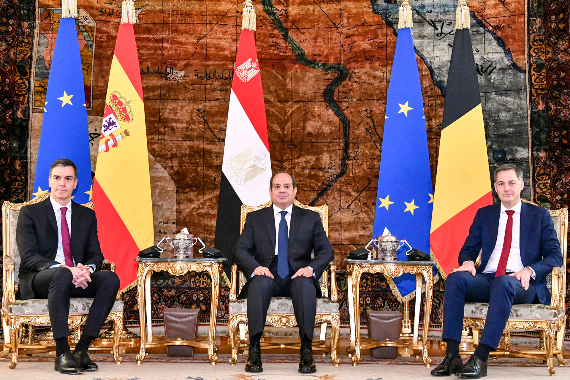 وأكد الرئيس المصري خلال مؤتمر صحفي مع رئيس الوزراء الإسباني بيدرو سانشيز، ورئيس الوزراء البلجيكي ألكسندر دي كرو، أن الأولوية الآن تنصب على احتواء التصعيد وتوفير مساعدات لقطاع غزة، وشدد على أهمية إدخال مساعدات تكفي لإغاثة جميع سكان القطاع.