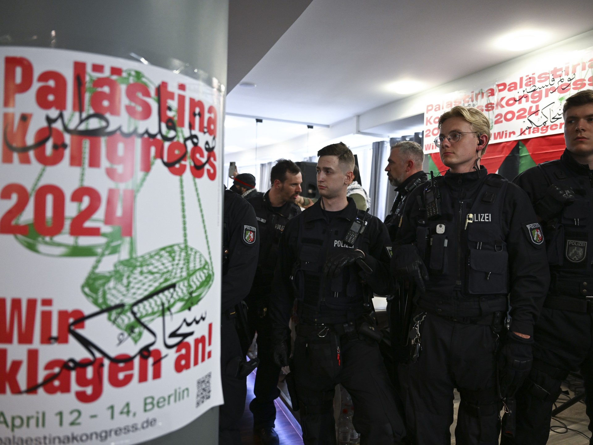 منعت الشرطة الألمانية -أمس الجمعة- منظمي مؤتمر مؤيد للفلسطينيين في برلين من مواصلة فعالياته بعد ساعة على بدئه، مشيرة إلى مخاوف بشأن تصريحات معادية للسامية.