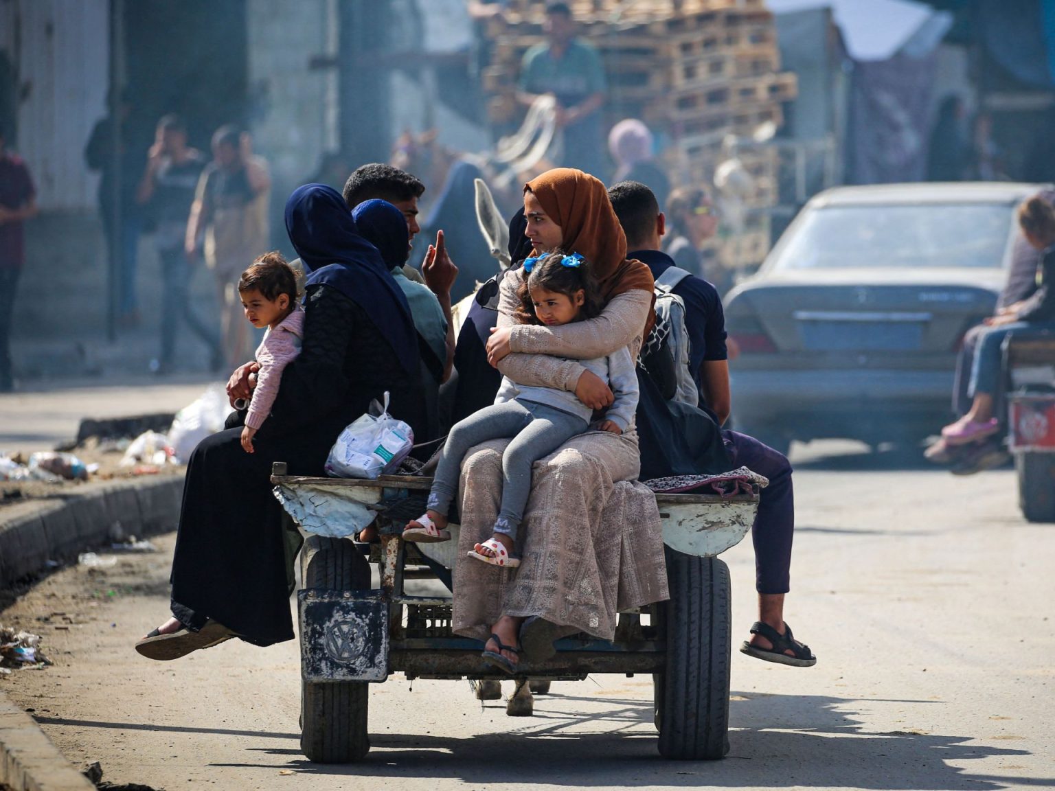 كما وثقت الصور حيرة النازحين -لا سيما النساء والأطفال- وهم يبحثون عن ممرات وملاذات آمنة يمكن أن توفر لهم النجاة من بطش الاحتلال، الذي ألقى منشورات من الجو تدعوهم لإخلاء شرق المدينة والاتجاه إلى غربها.