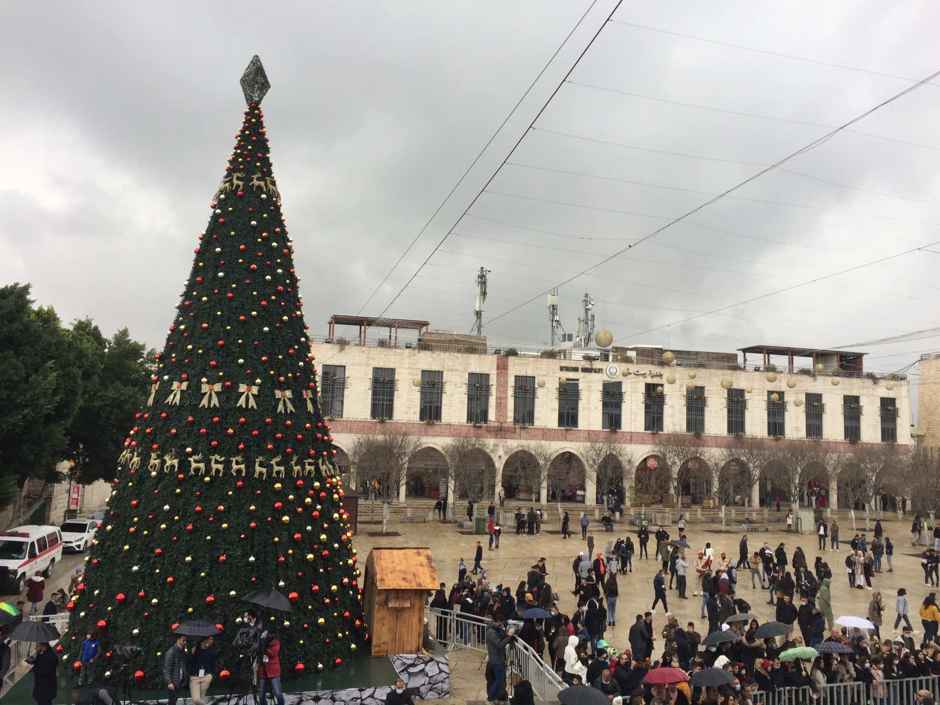 ألقت الحرب التي تشنها إسرائيل على قطاع غزة للشهر الثالث على التوالي بظلالها على أجواء احتفالات عيد الميلاد في مدينة بيت لحم في الضفة الغربية، فقد تقرر عدم إضاءة شجرة الميلاد في ساحة كنيسة المهد كما هو المعتاد، والاستعاضة عن ذلك بمجسم لحجم الدمار الذي لحق بالقطاع.