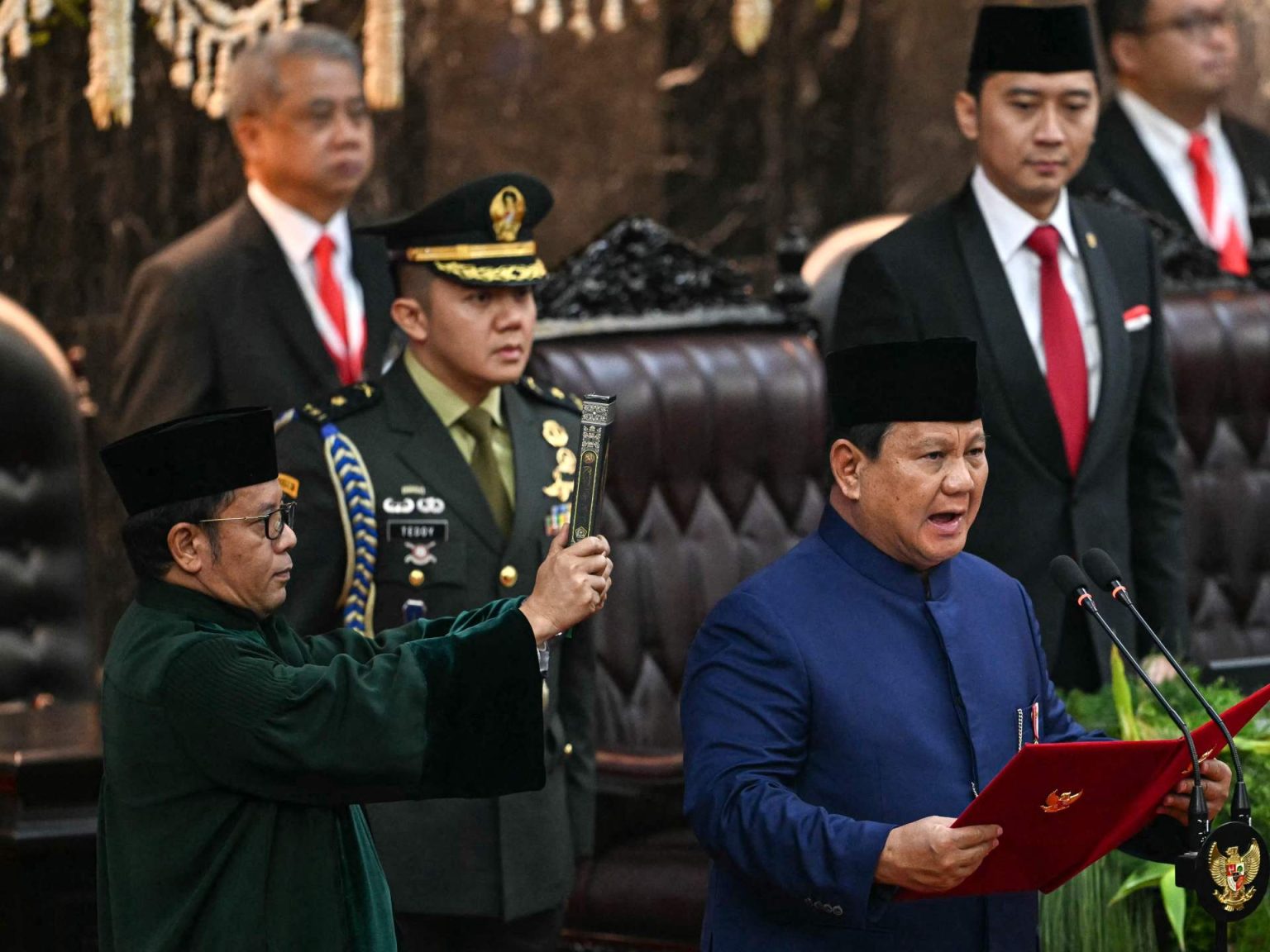 واستقبل آلاف الإندونيسيين المؤيدين لسوبيانتو -الذي شغل في السابق منصب وزير الدفاع- رئيسهم الجديد بحفاوة في الشوارع ولوحوا بالأعلام بعد أدائه اليمين على نسخة من القرآن الكريم أمام النواب والشخصيات الأجنبية في حفل التنصيب الذي أقيم في جاكرتا.