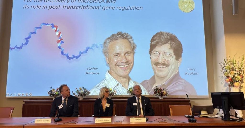 وقالت جمعية نوبل بمعهد كارولينسكا في السويد في بيان إن الحائزين على الجائزة اكتشفا فئة جديدة من جزيئات الحمض النووي الريبوزي، والتي تلعب دورًا حاسمًا في تنظيم الجينات.