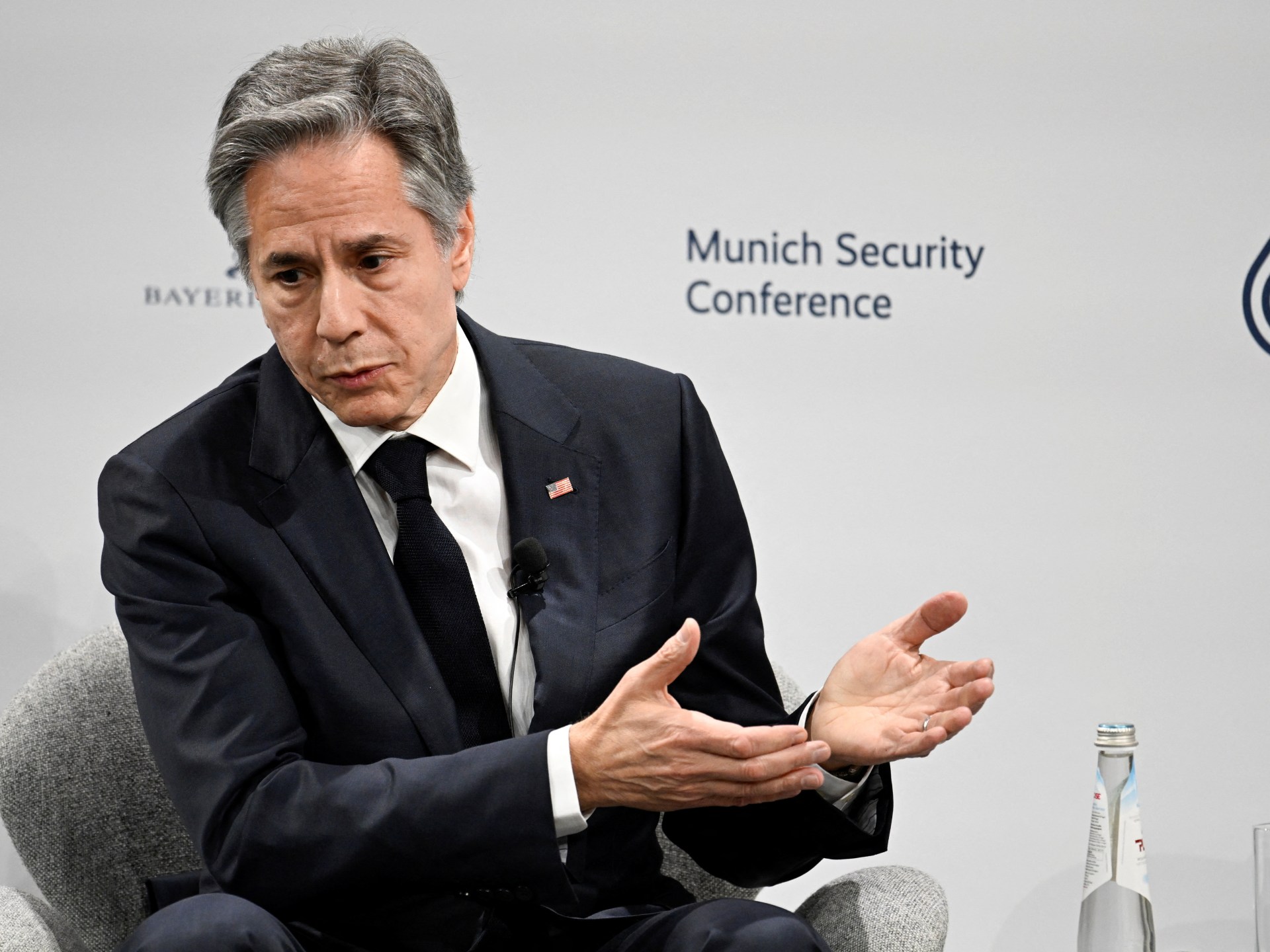 وفي حديثه خلال مؤتمر ميونخ للأمن سلط بلينكن الضوء أيضا على “الضرورة العاجلة” للمضي قدما في إقامة دولة فلسطينية تضمن كذلك أمن إسرائيل، على حد تعبيره.