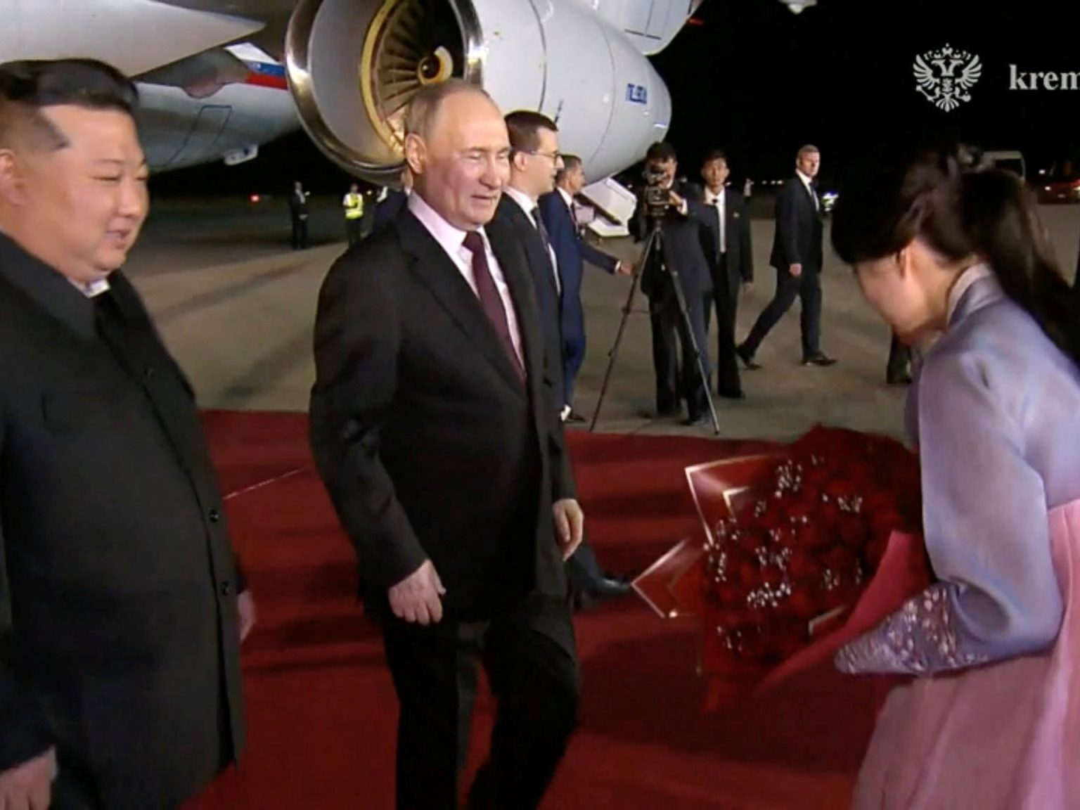 وأظهرت لقطات بثها الكرملين وصول بوتين إلى مطار في بيونغ يانغ حيث كان في استقباله الزعيم الكوري الشمالي كيم جونغ أون.