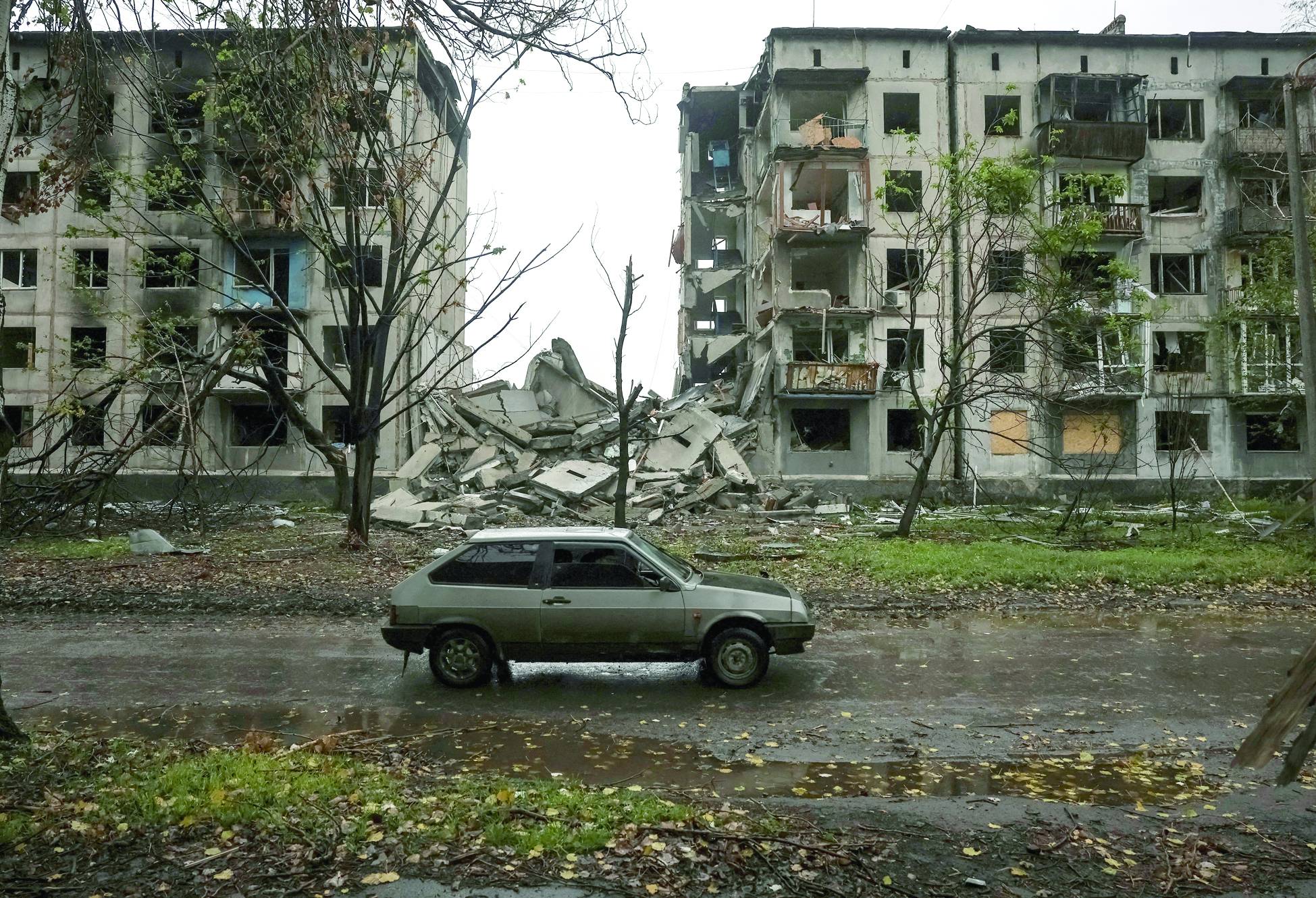 مبانٍ متضررة جراء ضربة روسية في بلدة بيلوزيرسكي الأوكرانية (رويترز)