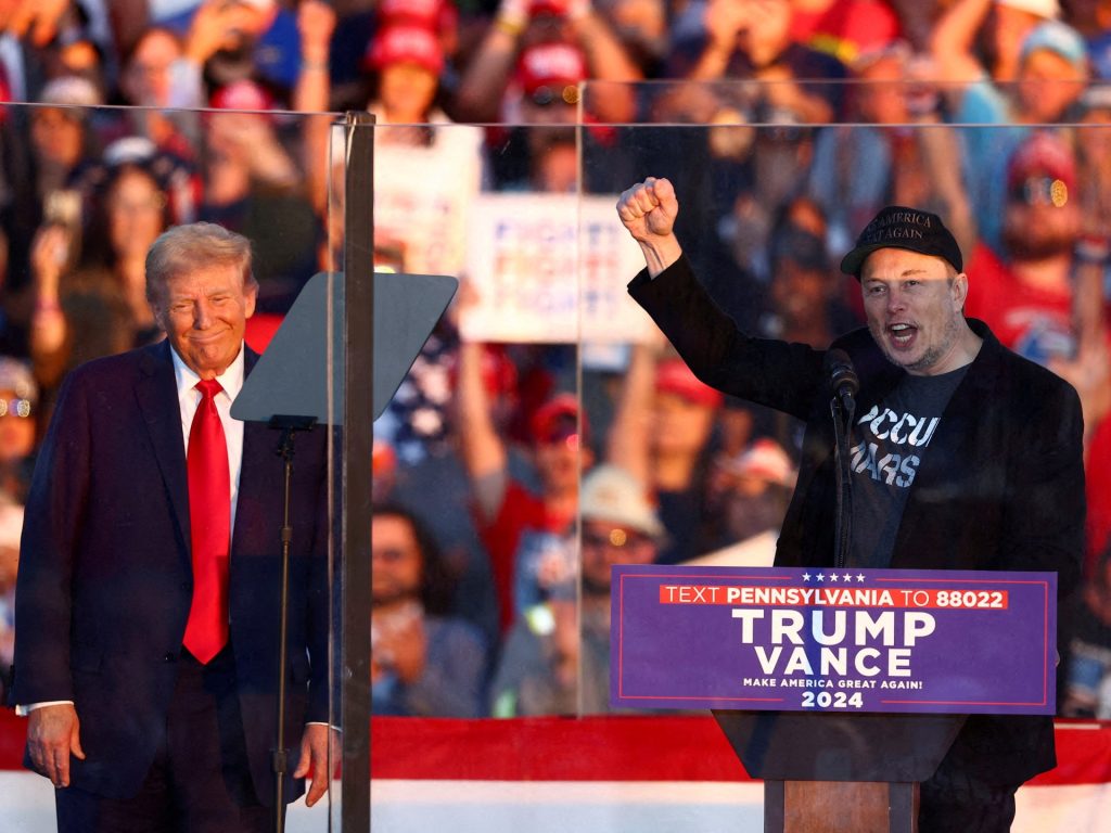 إيلون ماسك خلال جولة انتخابية لترامب في بنسلفانيا قبل الانتخابات (غيتي إيميجز)