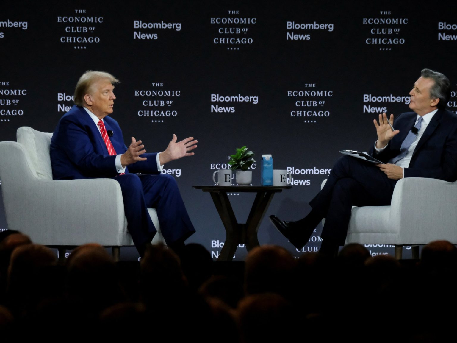 وواجه ترامب أسئلة ملحة بهذا الخصوص خلال مقابلة شملت موضوعات عديدة وخلافية أحيانا، أجراها معه رئيس تحرير شبكة بلومبيرغ الأميركية جون ميكلثويت في نادي شيكاغو الاقتصادي اليوم الثلاثاء.