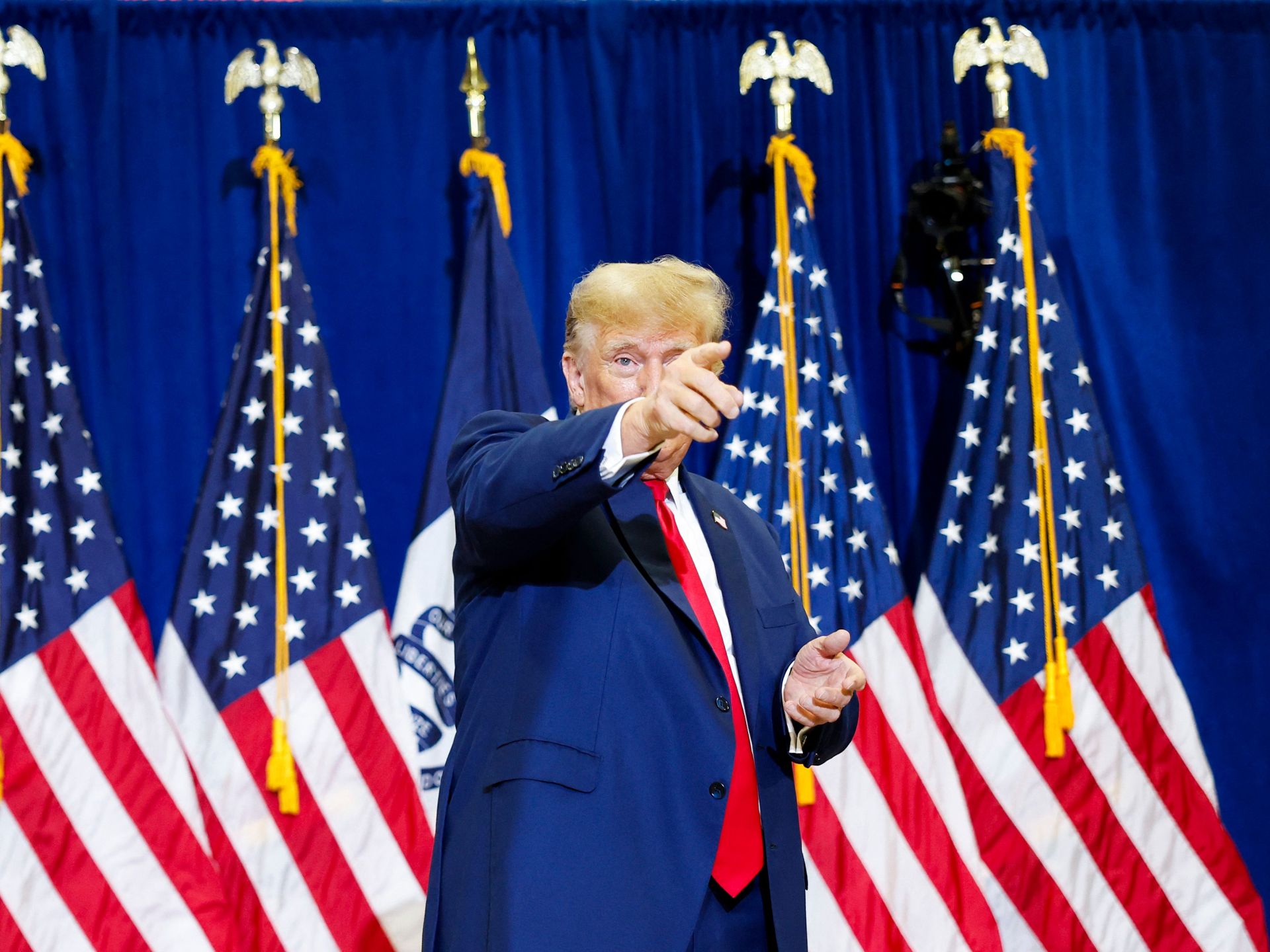 ودون أن يتفوه بكلمة بشأن هجوم أنصاره على الكابيتول في السادس من يناير/كانون الثاني 2021، وصل دونالد ترامب -الجمعة- إلى ولاية آيوا حيث يلقي كلمة في تجمع انتخابي في مدينة نيوتن ثم في مدرسة في مدينة كلينتون على الحدود مع ولاية إيلينوي.