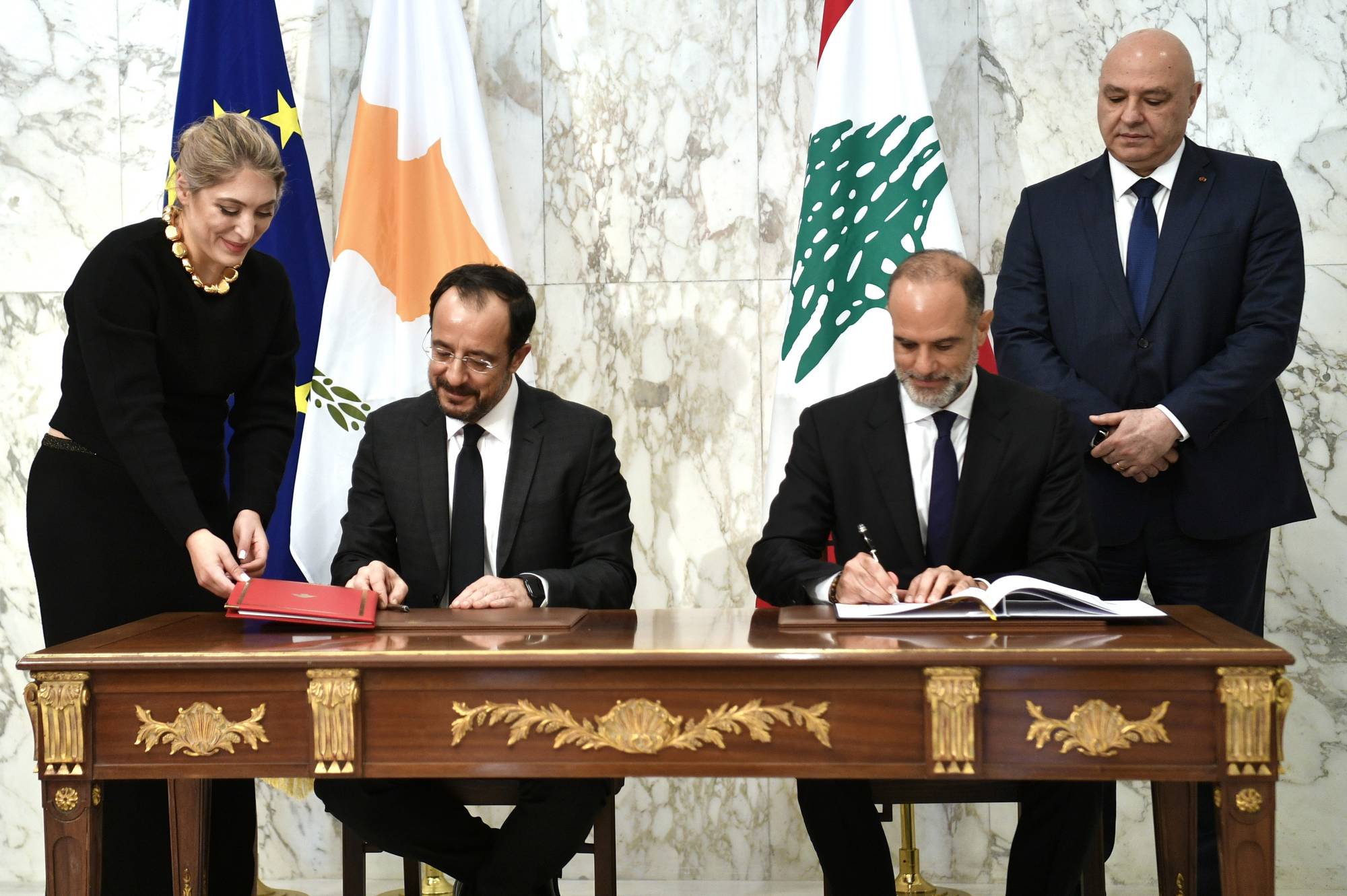 ووقع الرئيس القبرصي، نيكوس خريستودوليديس، ووزير الأشغال العامة اللبناني، فايز رسامني، اتفاقية ترسيم الحدود البحرية بين لبنان وقبرص في قصر بعبدا في بيروت الأربعاء بحضور الرئيس اللبناني جوزيف عون، في خطوة وصفها الطرفان بـ«التاريخية»، وبأنها إنجاز من شأنه أن يعزز الاستقرار، والتعاون الإقليمي، ويسمح للبلدين ببدء استكشاف ثرواتهما البحرية، والتعاون المشترك في عدد من المجالات، وفي مقدمتها الطاقة.