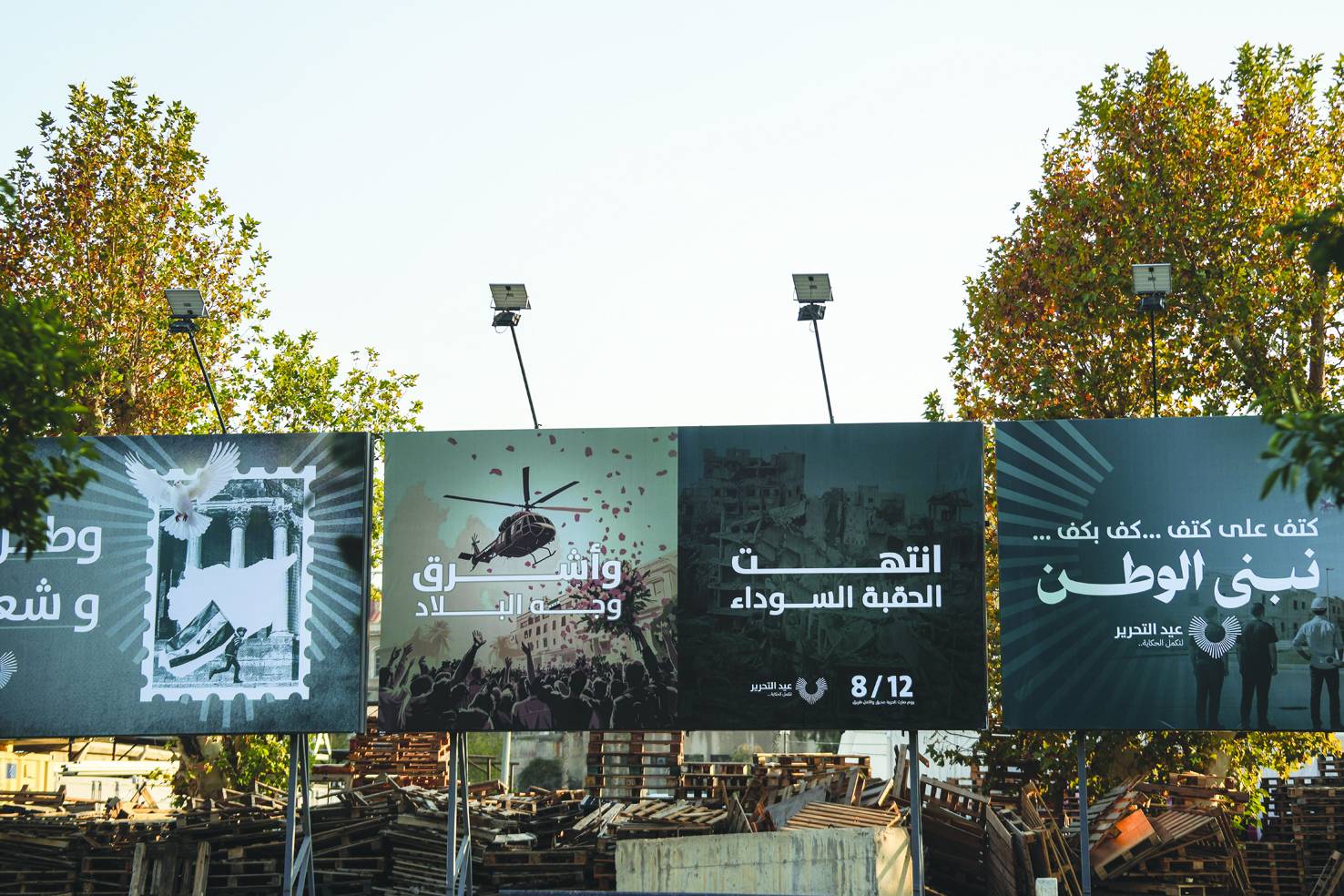 كانت المدينة على موعد مع احتفالات استثنائية بالذكرى السنوية الأولى لهروب بشار الأسد، والاستعدادات تسير على قدم وساق. منصات ومكبرات للصوت وتنظيم للسير ولافتات تشدد على الوحدة الوطنية «شعب واحد… وطن واحد» وأن «الحقبة السوداء انتهت». برنامج الحفل يصل إلى الهواتف النقالة عبر رسائل قصيرة تشجع على المشاركة وحضور الفعاليات «للاحتفال بالحرية والأمل… وإكمال الحكاية». لكن أي حكاية؟ سؤال يتردّد في الشوارع ذاتها التي تُباع فيها الأرغفة على الأسفلت وتشهد احتفالات النصر.