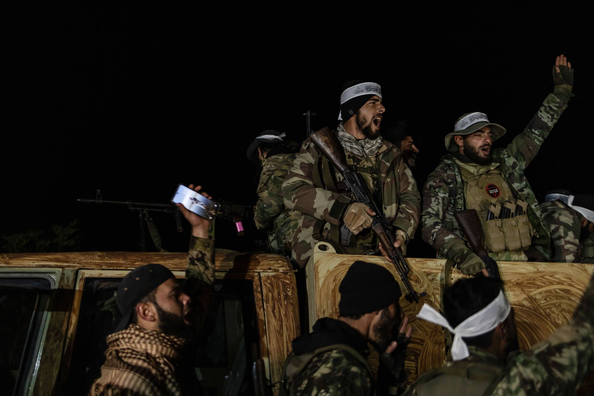 صورة ملتقطة يوم 28 نوفمبر 2024 في إدلب تظهِر مقاتلين من الفصائل السورية المسلحة خلال المعركة (د.ب.أ)