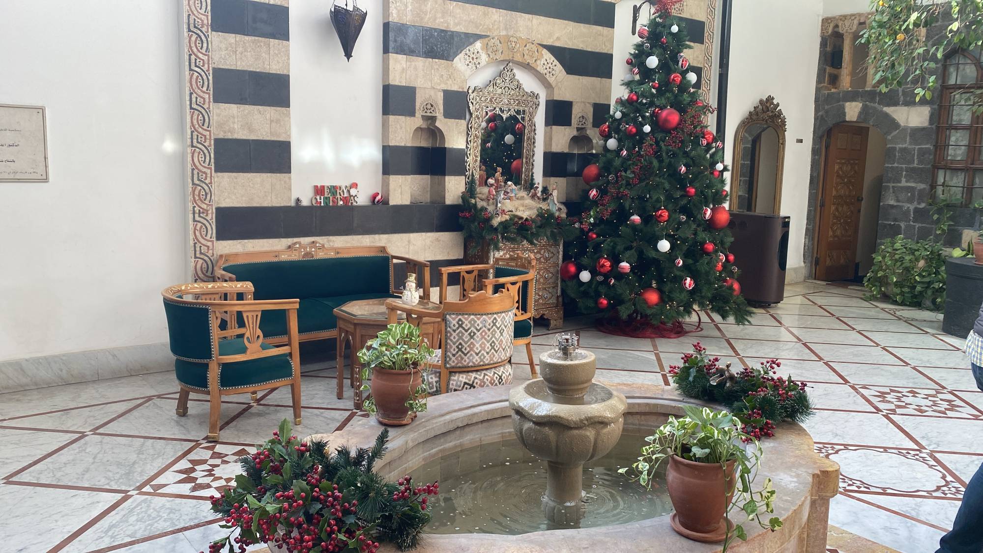 بهو فندق على الطراز الدمشقي القديم في منطقة باب توما (الشرق الأوسط)