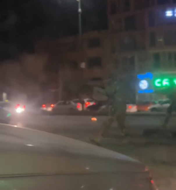 لقطة مأخوذة من فيديو متداول يُظهر عنصرين أمنيين يصوّبان سلاحهما على متظاهرين في همدان غرب إيران (إكس)