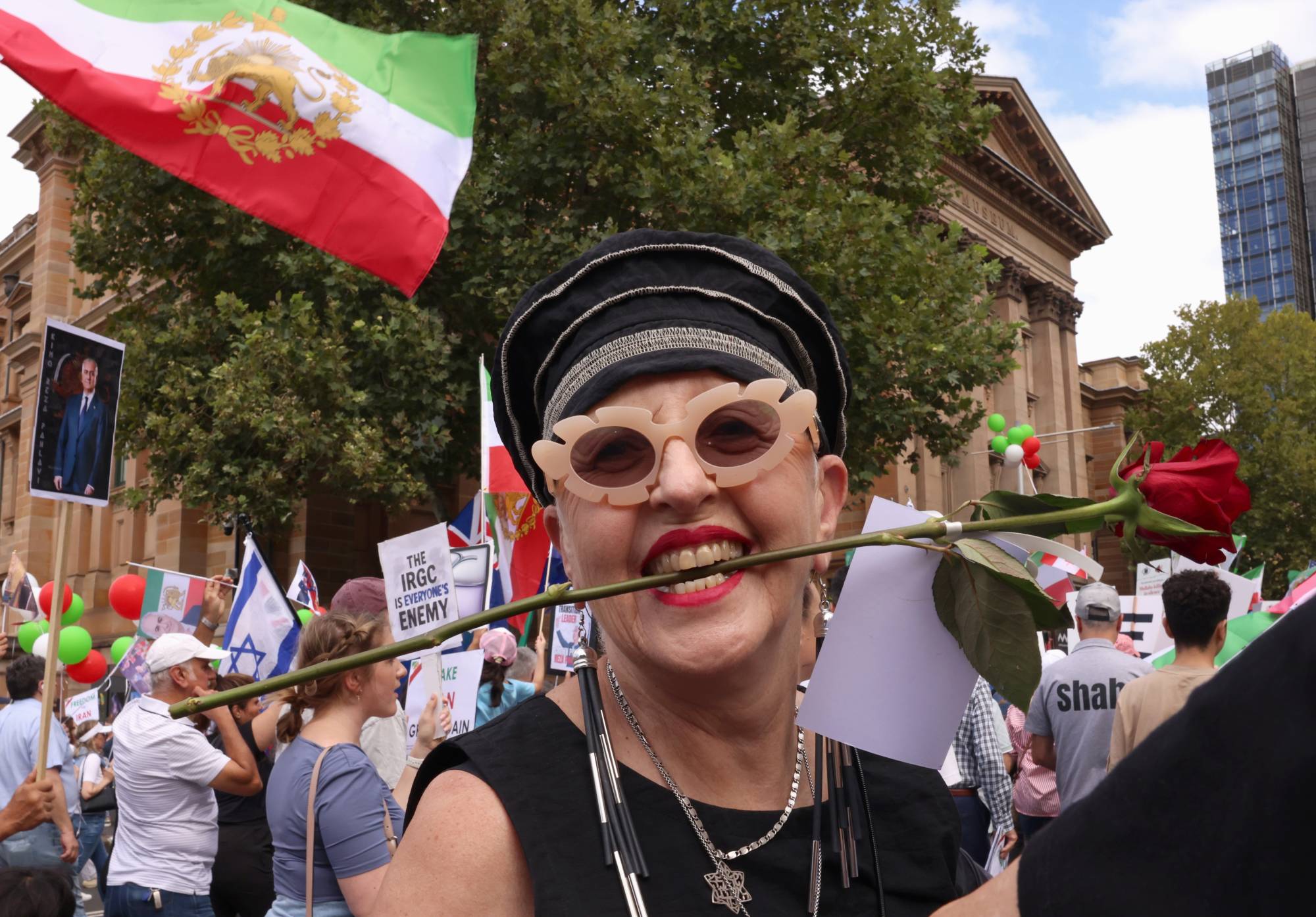 أشخاص في مظاهرة حاشدة بسيدني تضامناً مع المحتجين المناهضين للحكومة بإيران (إ.ب.أ)