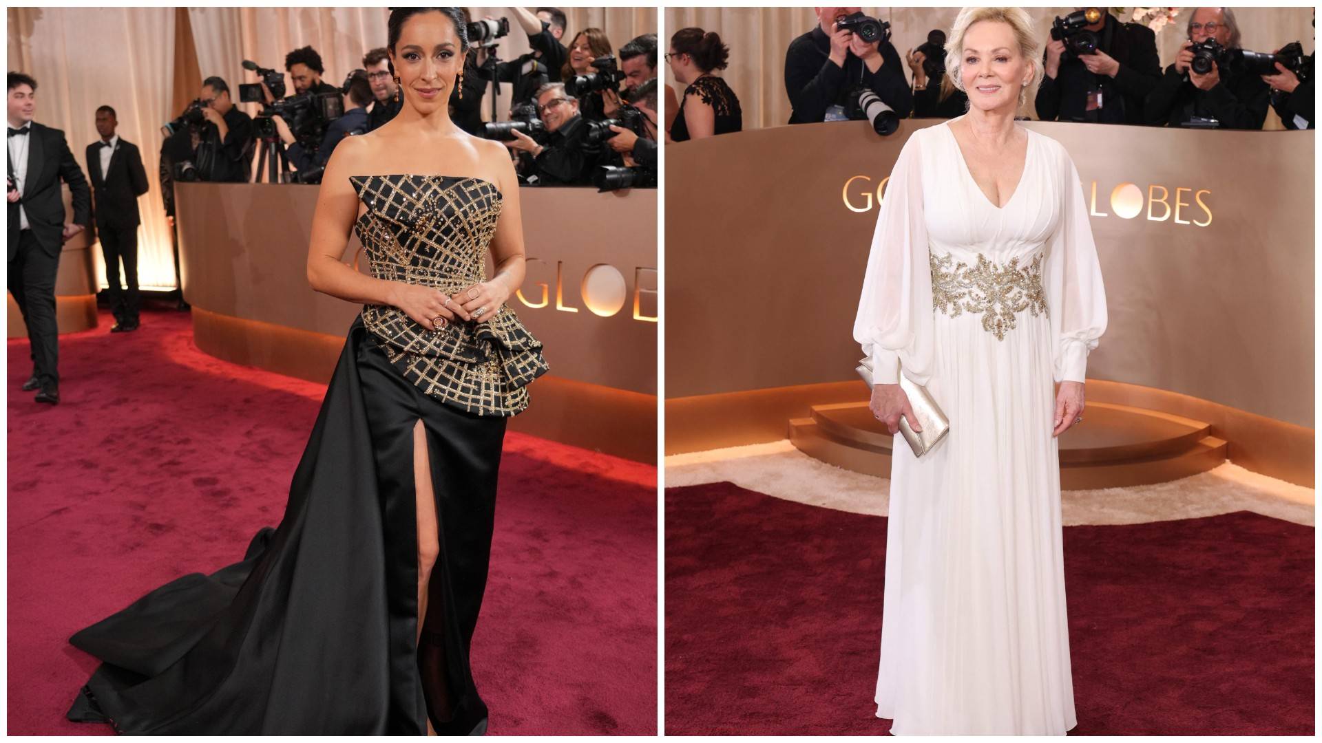 أما الممثلة أونا تشابلن فاختارت فستاناً من خط الـ«هوت كوتور» لربيع وصيف 2025، مصنوعاً من الحرير الأسود والذهبي، بصديري غني بالتباينات والتطريزات اليدوية، في حين اكتفت الممثلة جين سمارت، الحائزة جائزة الغولدن غلوب على أفضل أداء لممثلة في مسلسل تلفزيوني بفستان أبيض أميري، جمع الحضور الكلاسيكي والسلاسة المعاصرة ببساطة.