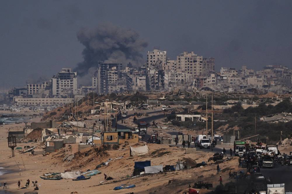 دخان يتصاعد جراء قصف إسرائيلي لأحياء في مدينة غزة (أ.ب)