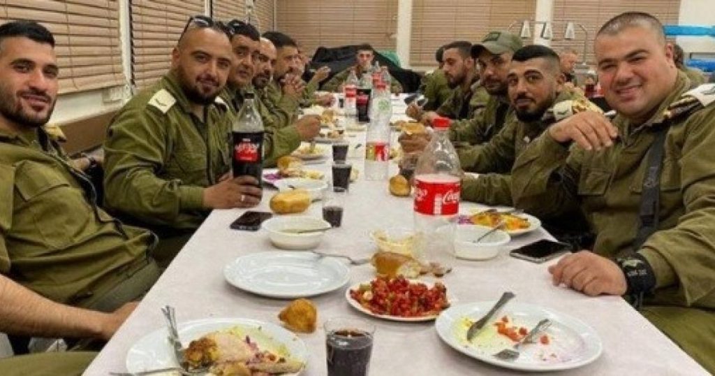 وقالت الصحيفة في وصف الصورة المرفقة أنها تُظهر جنودًا من لواء غولاني أثناء تناولهم وجبة عيد الفصح اليهودي.