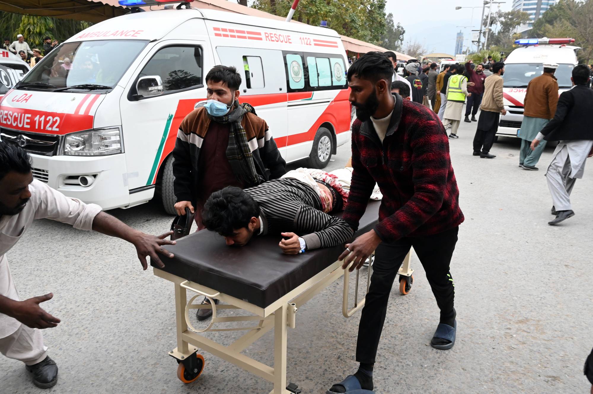 ورأى مراسلون عند مستشفى «المعهد الباكستاني للعلوم الطبية» عدداً من النساء والأطفال يُنقلون إلى المنشأة. وتولى مسعفون وأشخاص آخرون نقل الضحايا المضرجين بدمائهم من سيارات الإسعاف ومركبات أخرى. وعلت صرخات أصدقاء وأقارب الجرحى لدى وصولهم إلى قسم الطوارئ في المستشفى، حيث فرضت إجراءات أمنية مشددة.