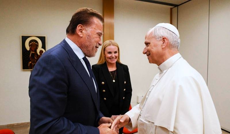 لقاء بين البابا ليو والممثل أرنولد شوارزنيجر (إعلام الفاتيكان)