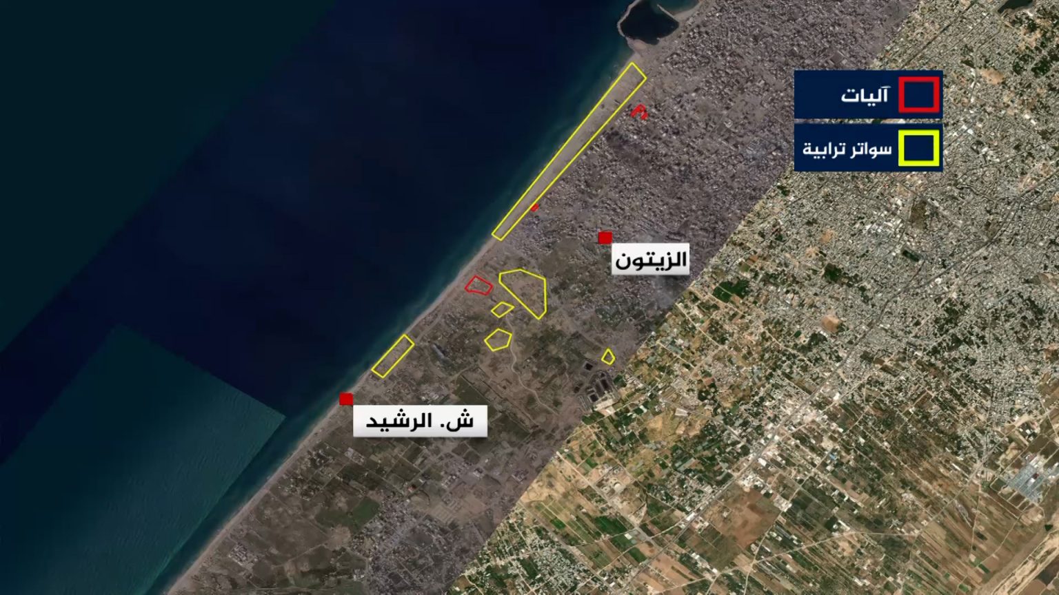 كما أظهرت صور الأقمار الصناعية على الساحل، سواتر ترابية أنشأها الاحتلال بداية التوغل البري -أواخر أكتوبر/تشرين الأول الماضي- خالية من الآليات في معظمها.