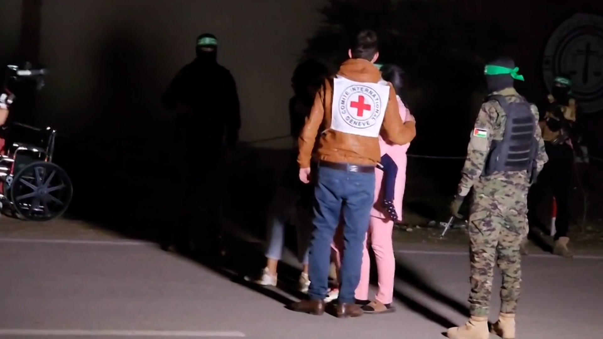 حصلت الجزيرة على صور حصرية تظهر لحظة تسليم كتائب عز الدين القسام، الجناح العسكري لحركة المقاومة الإسلامية (حماس) 11 محتجزا إسرائيليا و6 تايلنديين إلى الصليب الأحمر في خان يونس جنوب قطاع غزة مساء اليوم الاثنين.