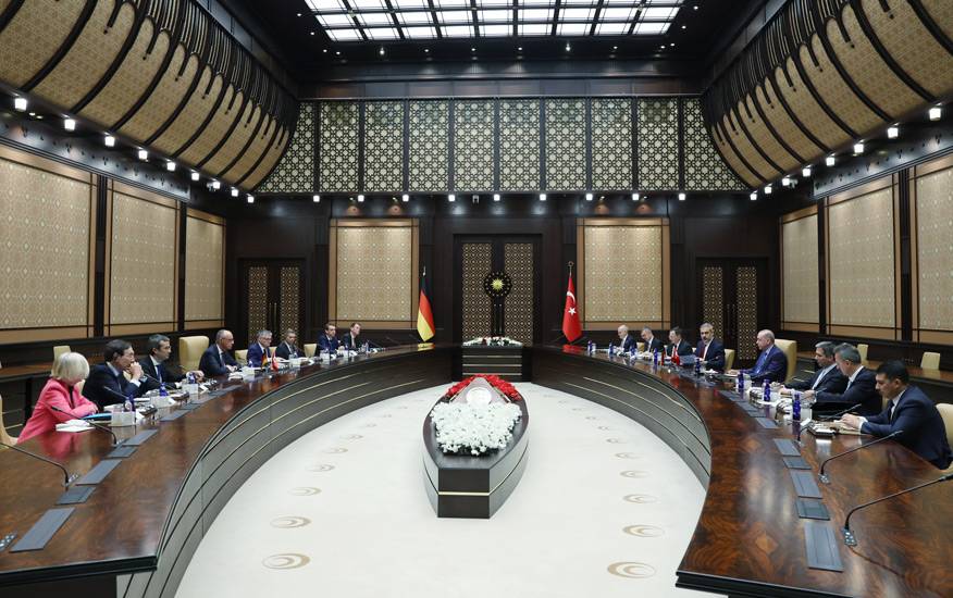 وأبدى الرئيس التركي، رجب طيب إردوغان والمستشار الألماني فريدريش ميرتس تفاهماً كبيراً بشأن التعاون بين بلديهما في الصناعات الدفاعية، والحاجة إلى التعاون المشترك في إطار حلف شمال الأطلسي (ناتو)، ودعم تركيا لأمن دول الاتحاد الأوروبي، رغم اختلافهما بشأن حصول تركيا على العضوية الكاملة للاتحاد.