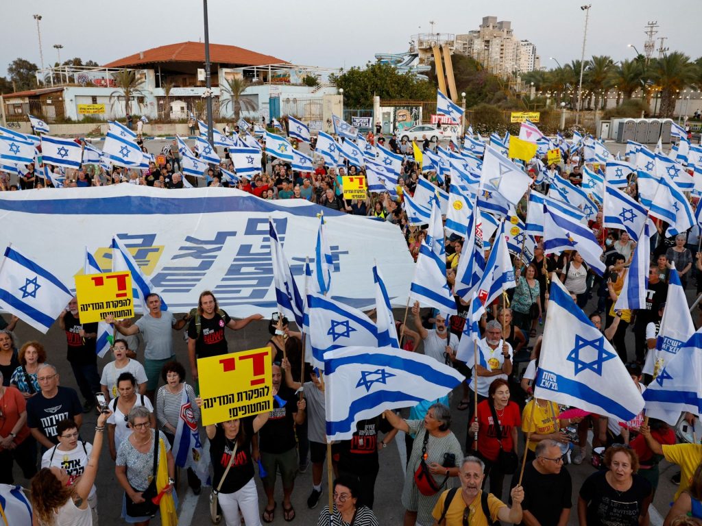 وفي مدينة قيساريا جنوب حيفا حيث يقع أحد منازل رئيس الوزراء الإسرائيلي بنيامين نتنياهو أغلقت عائلة أحد الأسرى الإسرائيليين ومحتجون آخرون مفترق طرق، وهتفت والدته ضد نتنياهو ووصفته بالفاشل الذي يفضل بقاءه السياسي على حياة الأسرى والإسرائيليين عامة.