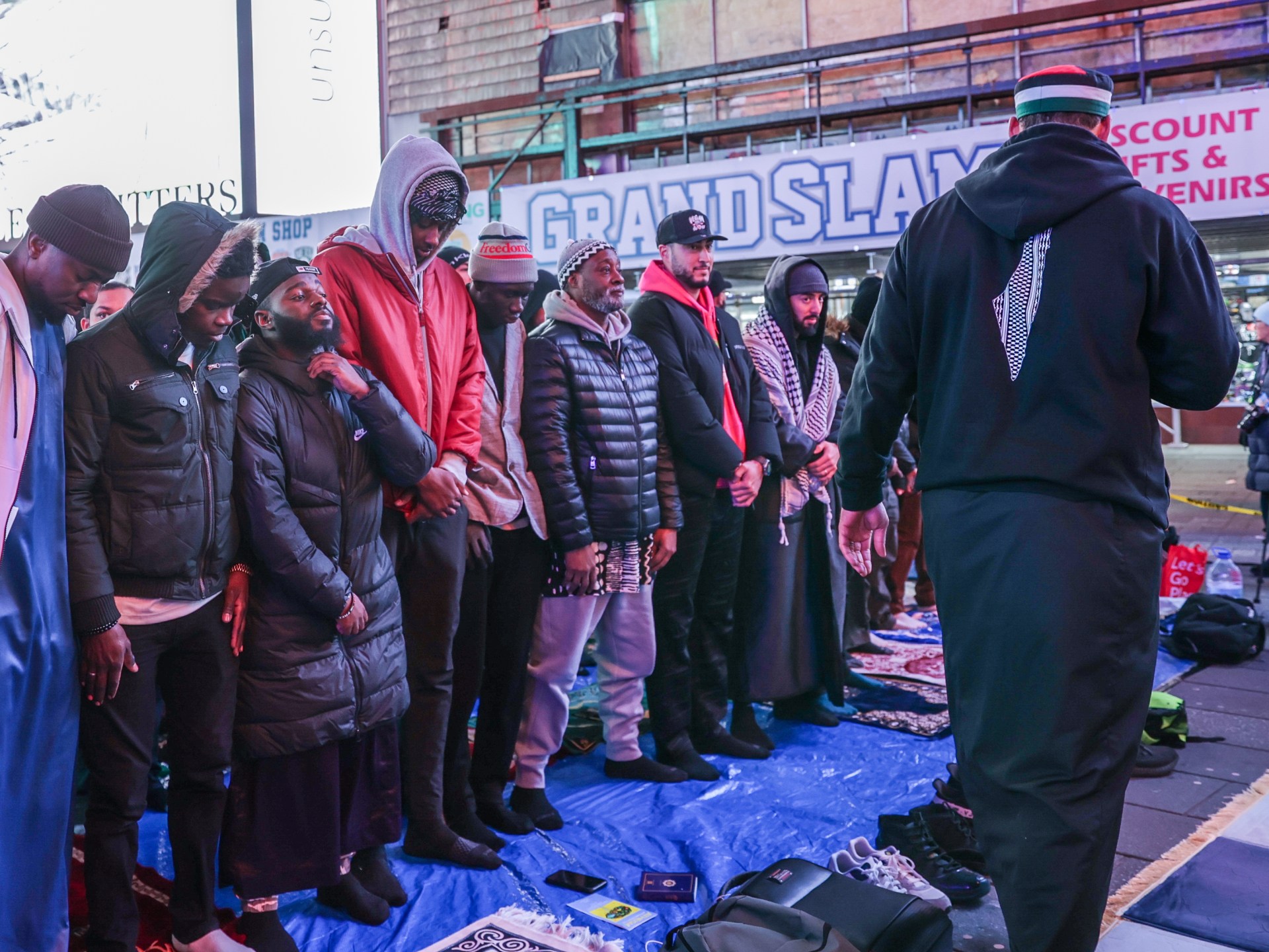 وتجمع عشرات المسلمين في ميدان التايمز، أحد أهم رموز نيويورك، وأدوا أول صلاة تراويح في شهر رمضان.
