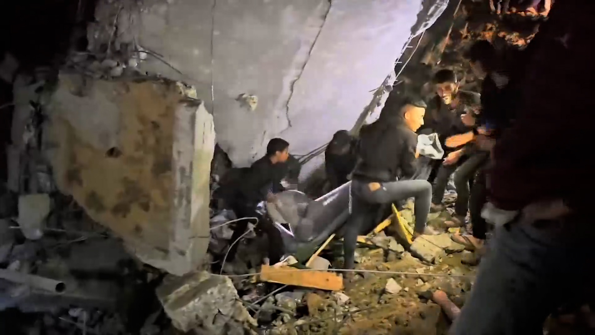 وأعلن جهاز الدفاع المدني بقطاع غزة، في بيان، أن طواقمه انتشلت جثث 14 فلسطينيا استشهدوا بقصف إسرائيلي لمنزل في مخيم النصيرات.