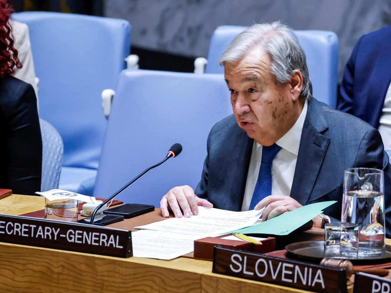 وشدد غوتيريش على ضرورة حل الدولتين، وأن لكل شعوب المنطقة الحق في العيش بسلام.