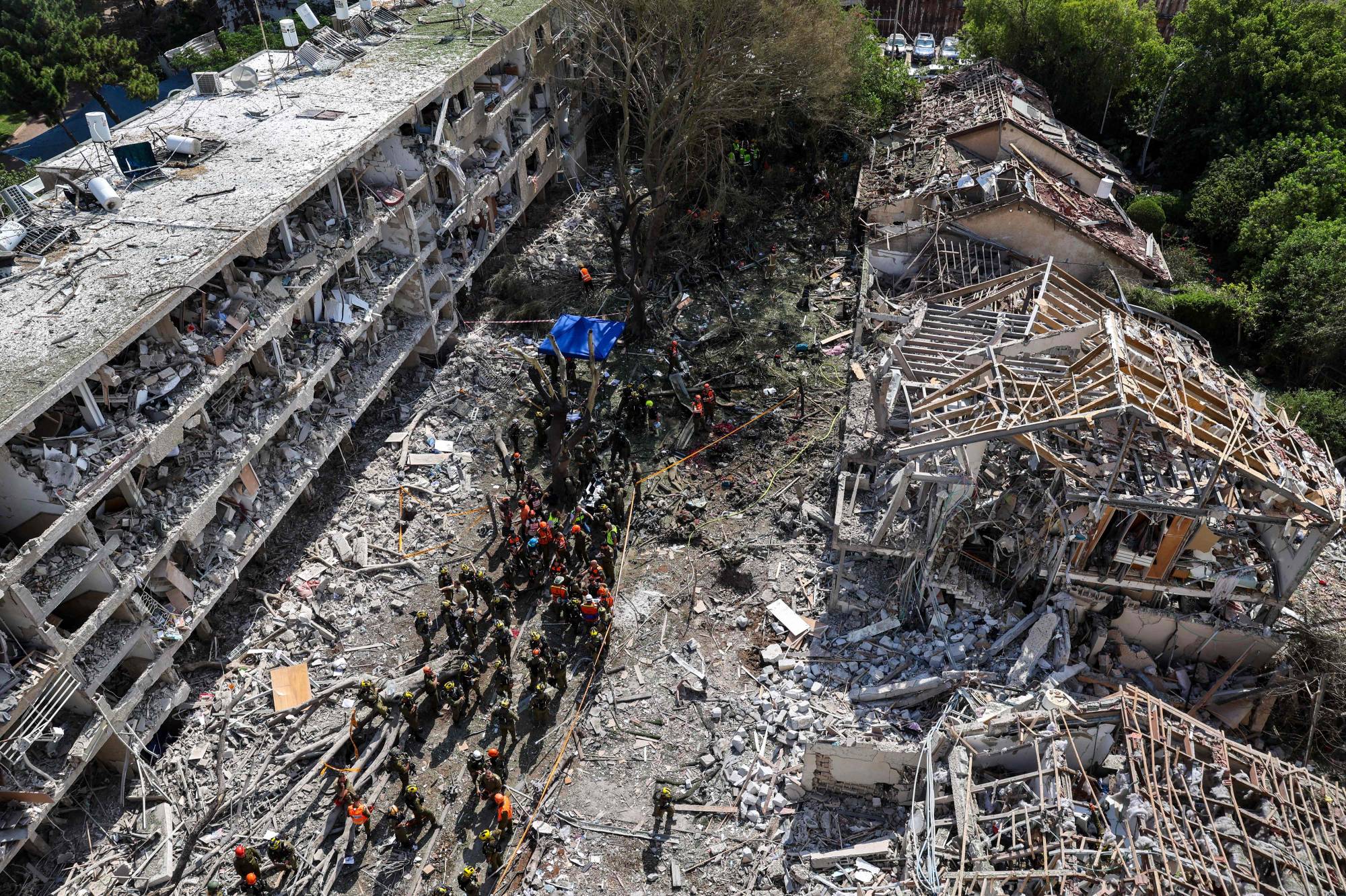 قوات أمن إسرائيلية وفرق إنقاذ بموقع غارة إيرانية استهدفت تل أبيب في إسرائيل 22 يونيو الماضي (أ.ف.ب)