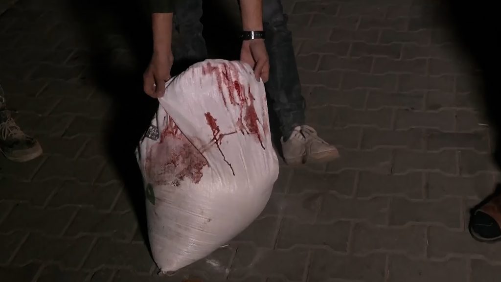 وخلال بث مباشر، أحضر أحد شهود العيان لمراسل الجزيرة إسماعيل الغول الكيس المخضب بالدماء، وقال إنه يعود لأحد شهداء المجزرة الجديدة الذي دفع حياته ثمنا لهذا الكيس، وأضاف “دماء الشهيد تغطي الكيس هذا كل ما تبقى منه، أصبحت حياة الناس تزهق من أجل كيس طحين، ولا حول ولا قوة إلا بالله”.