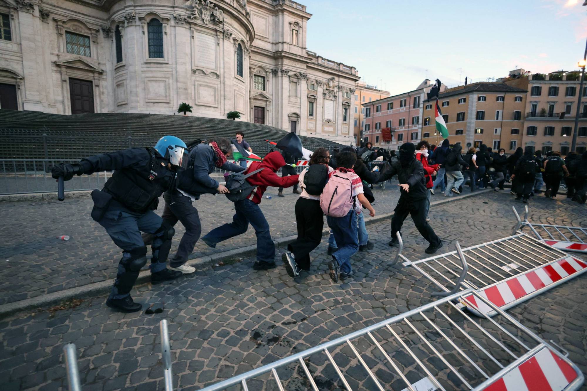 ومع حلول المساء، اندلعت اشتباكات بين المتظاهرين ورجال الشرطة الذين استخدموا الغاز المُسيل للدموع وخراطيم المياه، على أثر تعرضهم للرشق بالزجاجات والمفرقعات. وأفادت وكالة «أنسا» للأنباء باعتقال 11 متظاهراً.