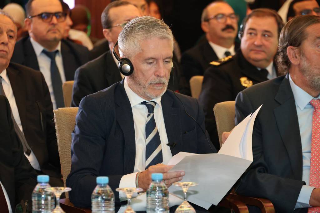 وزير داخلية إسبانيا خلال متابعته كلمة نظيره الجزائري (الداخلية الجزائرية)