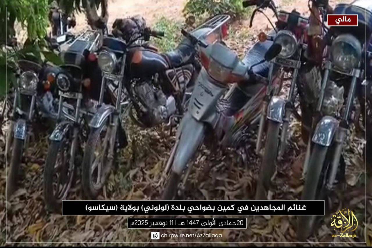 وعرض التنظيم صوراً للأسلحة والذخيرة التي استحوذ عليها في الهجوم الإرهابي، كما أعلن أنه تصدى لميليشيا موالية للجيش من قبائل الدونزو، في ضواحي بلدة لولوني بولاية سيكاسو، غربي البلاد.