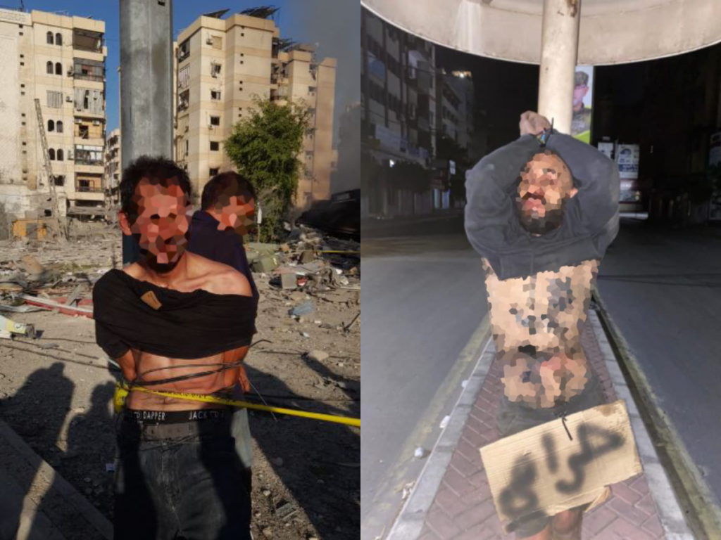 انتشرت على وسائل التواصل الاجتماعي صور لرجال مربوطين على أعمدة في شوارع ضاحية بيروت الجنوبية، وخلفهم آثار الدمار الهائل الذي تركته الغارات الجوية الإسرائيلية في المنطقة التي كانت مكتظة بالسكان، وباتت شبه خالية منذ وصول شرارات الحرب إليها أواخر الشهر الماضي، ليتبين أنهم اتهموا بتنفيذ سرقات، وأمسك بهم شبان المناطق، في غياب الحضور الأمني الرسمي الفاعل، وغياب شبه تام لعناصر «حزب الله» الذي كان يتولى الأمن في معاقله.